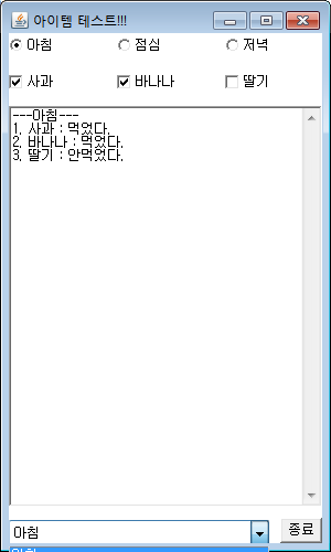 System.out.println(selStr); //아침,점심,저녁이 체크될때 마다 콘솔창에 뜸