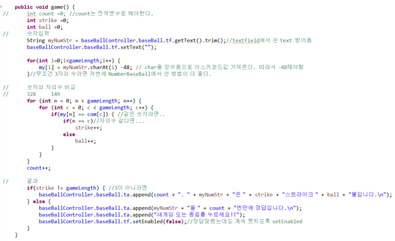 이제 예전에 했던 야구게임 코드를 복사