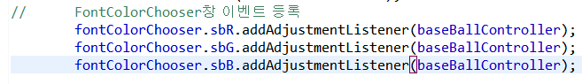 BaseBallService에서 fontColorChange method 실행했을때 FontColorChooser를 setVisible해줌