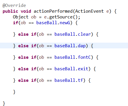 BaseBallController에 implements ActionListener하고 Override도 함
