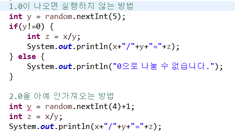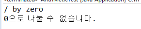 -ArithMeticException은 RuntimeException이기 때문에 try catch로 처리해야하는 것이 아니라 logic으로 처리해야한다.