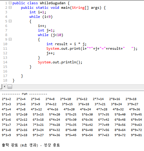 예제) 구구단 //변수나 ++을 찍는 위치 등을 잘 고려해야한다.