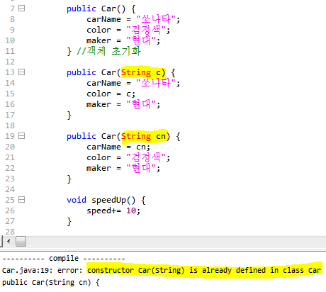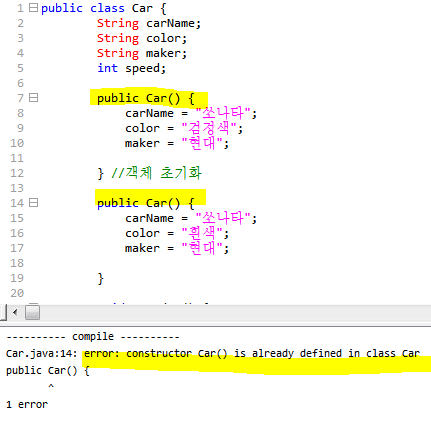 하지만 다른 색도 지정하고 싶다. 생성자가 같은 것이 두개 있다고 에러가 난다.