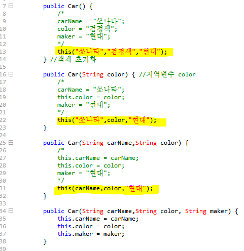 따라서 this를 써야한다. //자기가 가지고있는 생성자를 호출할때는 this를 쓴다.