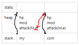 System.out.println("내체력 : "+my.hp+" 적체력 : "+com.hp);