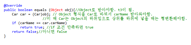 Car에서 Object의 equals를 Car에게 맞게 형변환해야한다.